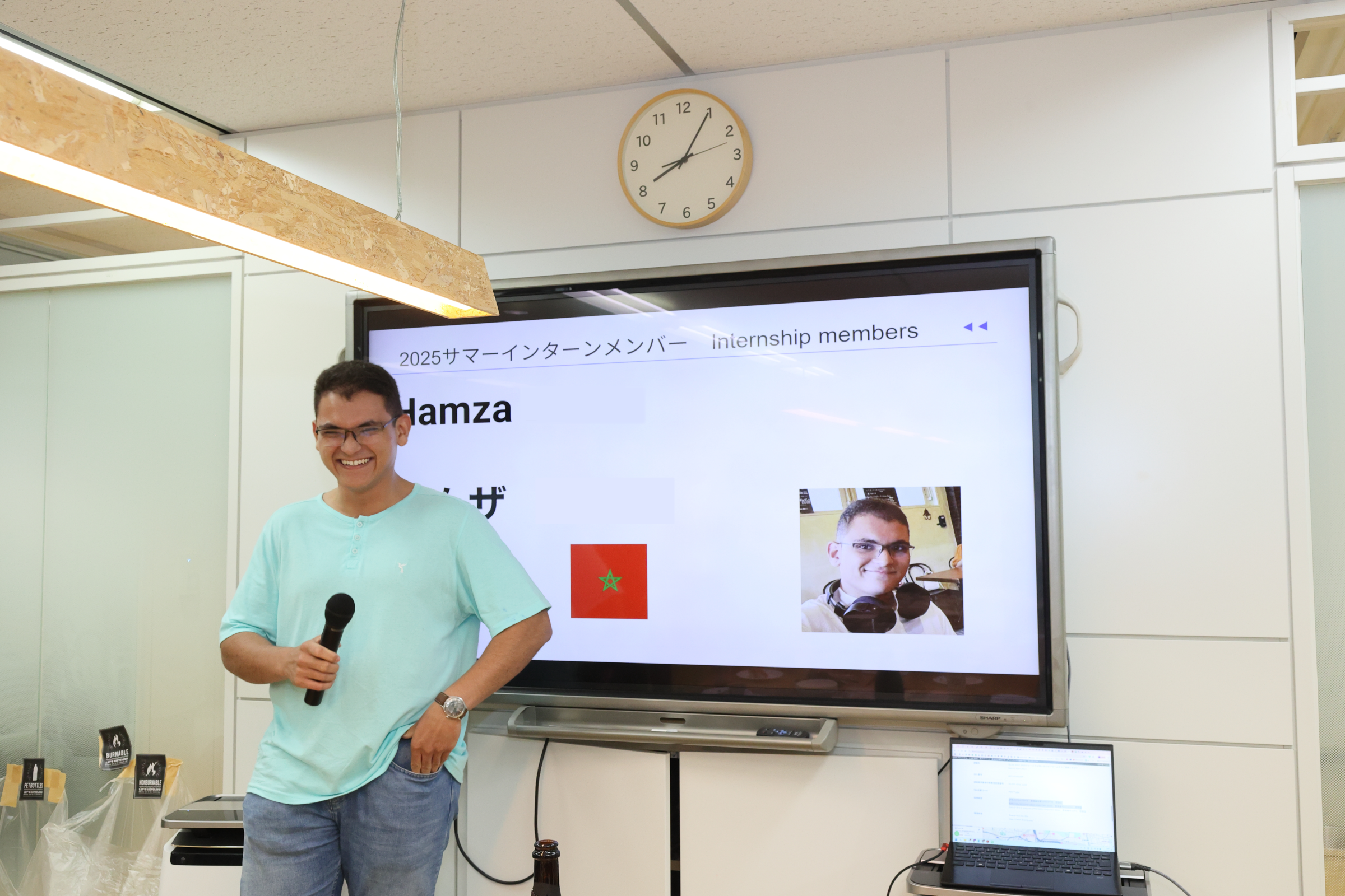 Hamza: My name is Hamza. I come from Morocco but I study at Mines Saint-Étienne in France. The biggest reason I applied was, like Emin, I wanted to visit and explore Japan, and this was a great opportunity. But this wasn't the only reason. I'd heard that at other companies, interns don't usually contribute much to real products, but that's not the case here. We had opportunities to work on meaningful real-world tasks and add features that clients actually use. It feels great to work on something that others will eventually use.